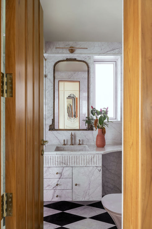 The canvas of the home draws inspiration from the home owners love for minimal yet warm and intimate space that makes all guests feel welcomed. From the gentle play of colors to the intricate prints and motifs adorning the walls through wallpapers and hints and pops of colour through the furniture and soft furnishing, each element narrates a story of elegance. Here, variations of the neutral color palette dominate, punctuated by the warmth of teak wood and the luster of brass accents. The flooring, adorned with beige marble serves as a canvas to inculcate a sense of peace and calm.